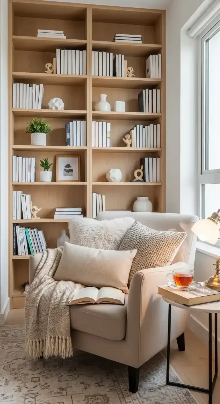 Create a quiet corner with a comfy chair, a soft throw blanket, and a small bookshelf. Perfect for curling up with your favorite book.