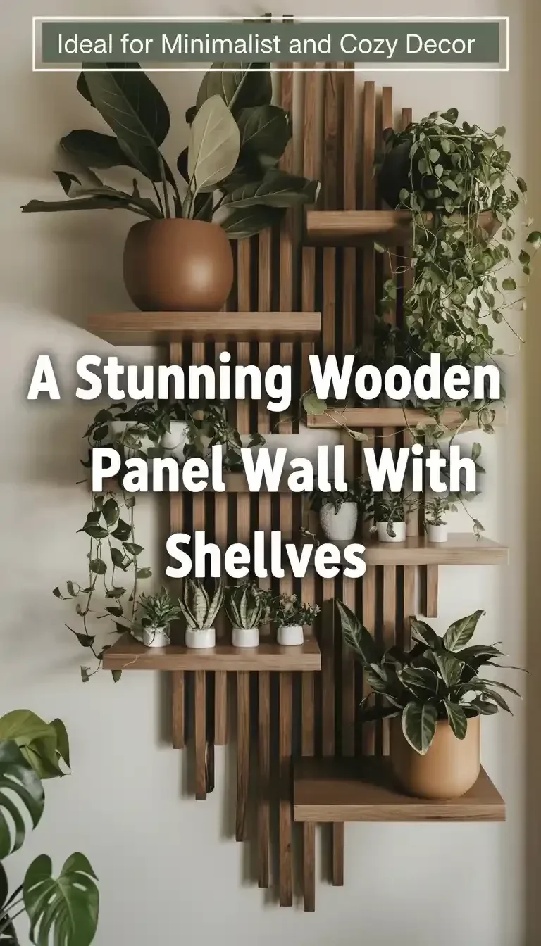 Create a Stunning Wooden Panel Wall with Shelves: Ideal for Minimalist and Cozy Decor