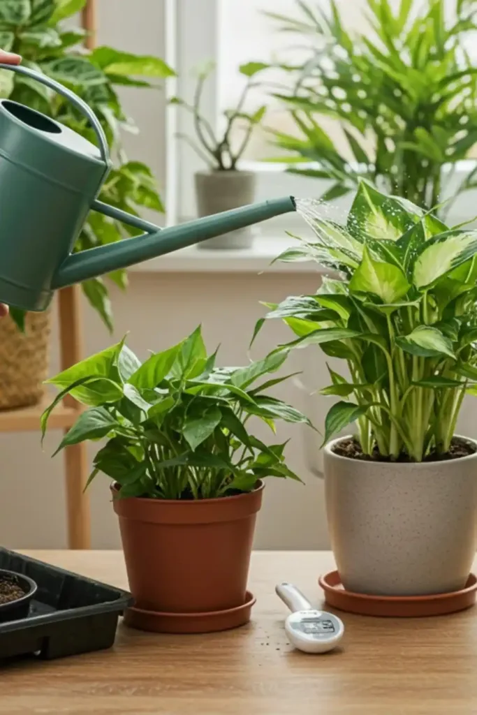 Understanding when to water is as crucial as how you water. Most indoor plants require: