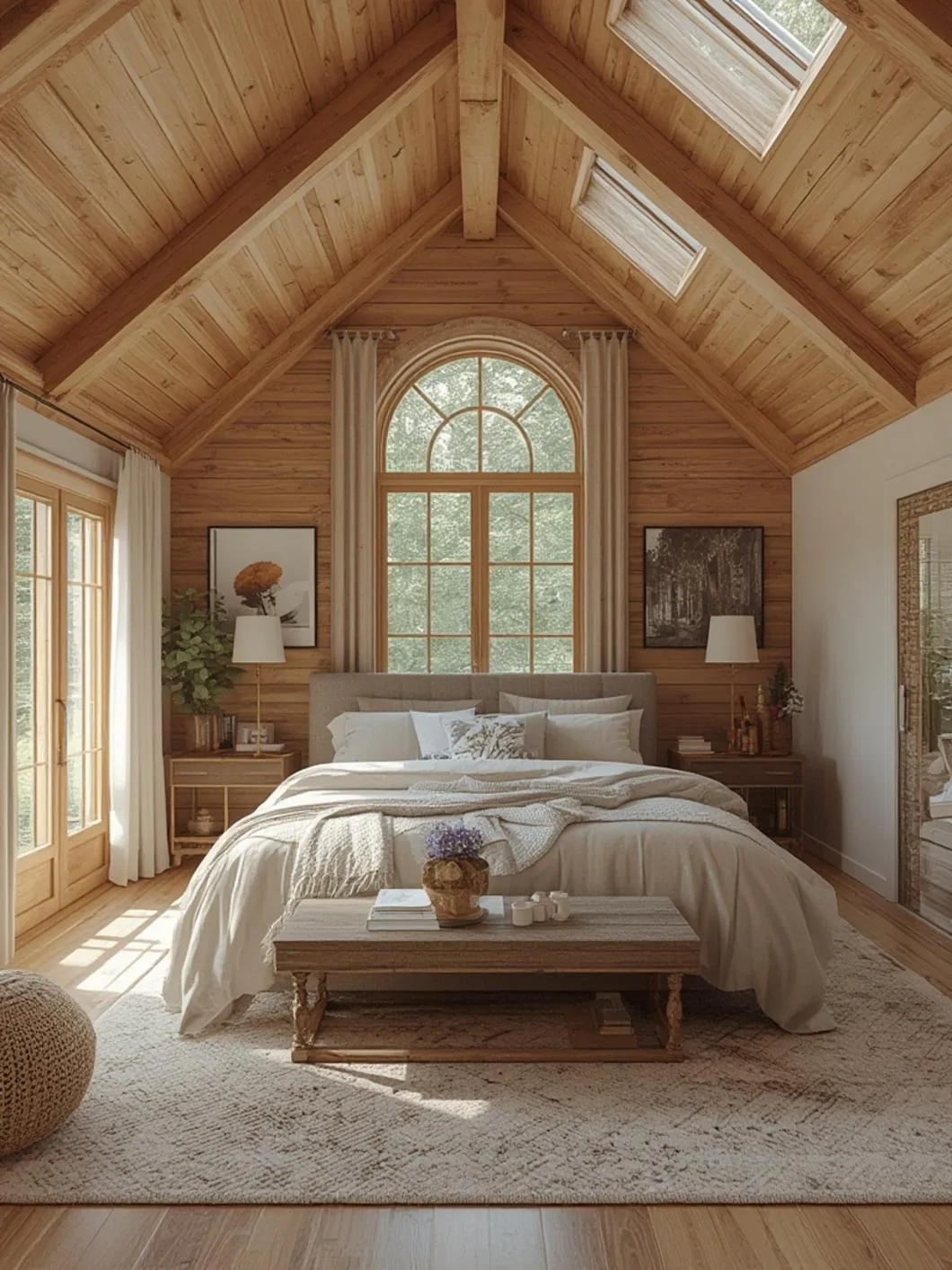 – Wood: Opt for sustainable pine, cedar, or reclaimed timber for flooring, wall paneling, and exposed beams