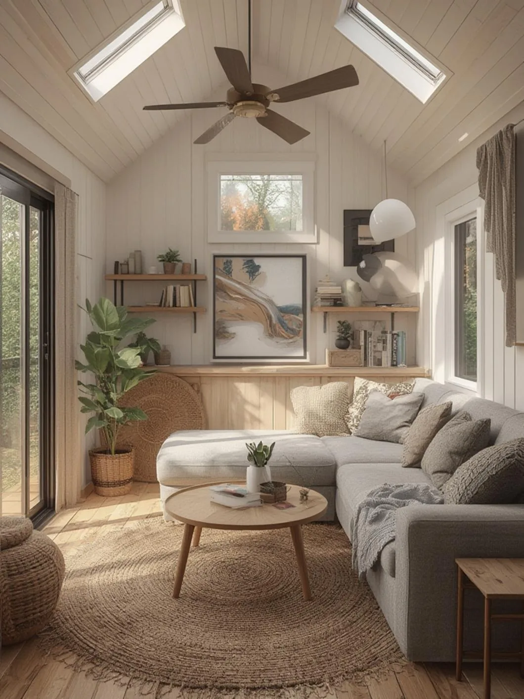 – Scandinavian Tiny: Light woods, white walls, minimal textiles, functional beauty