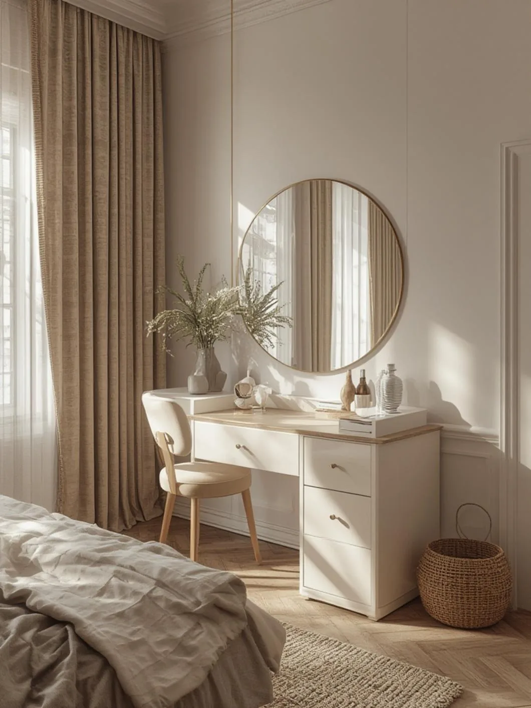 Your vanity area should reflect your personal style while complementing your bedroom’s existing color palette and design elements. Whether you prefer a built-in nook, a repurposed vintage desk, or a contemporary floating design, the vanity should feel like an intentional extension of your bedroom’s character.