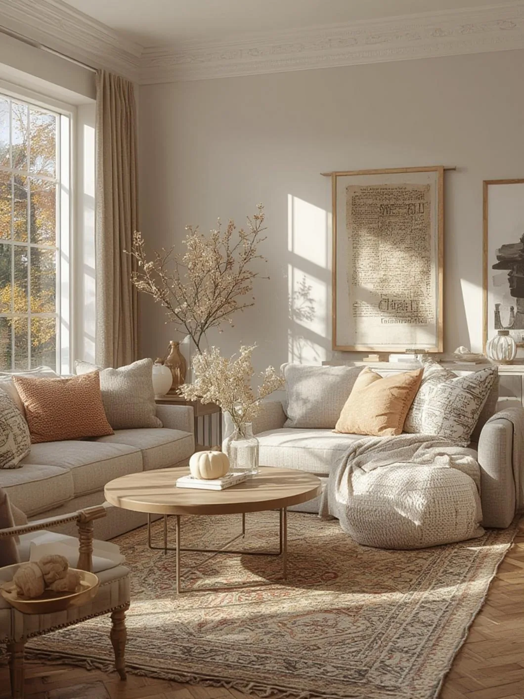 2. Layer textiles strategically: Begin with heavier curtains, then add area rugs, sofa throws, and finally accent pillows in coordinating autumn colors.