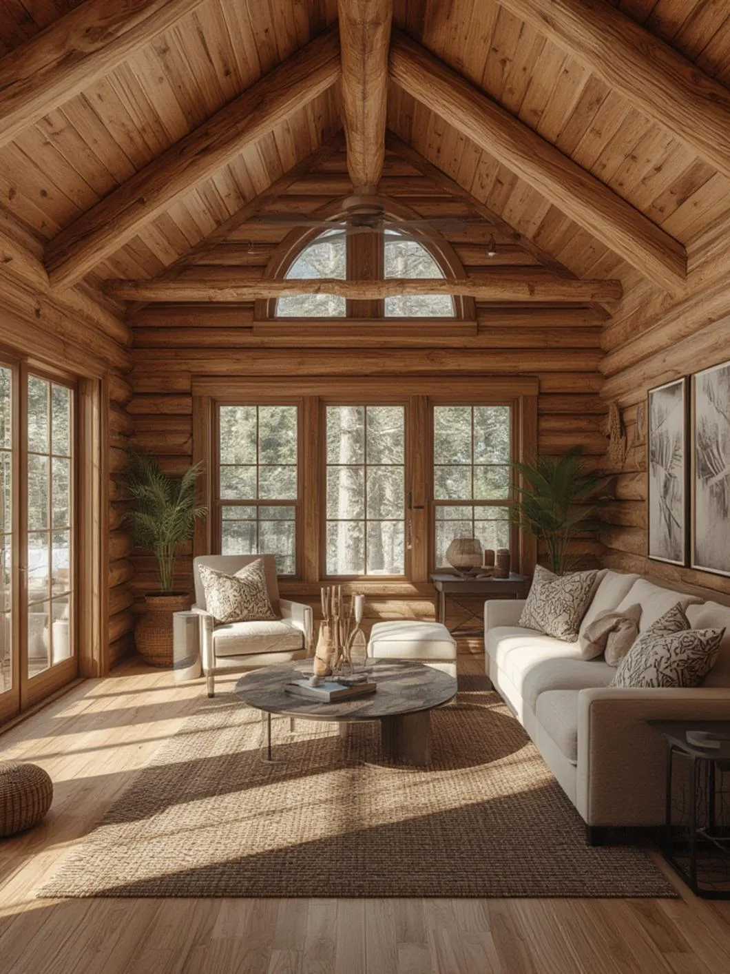 4. Exposed Beam Ceilings: For authentic cabin character and visual height